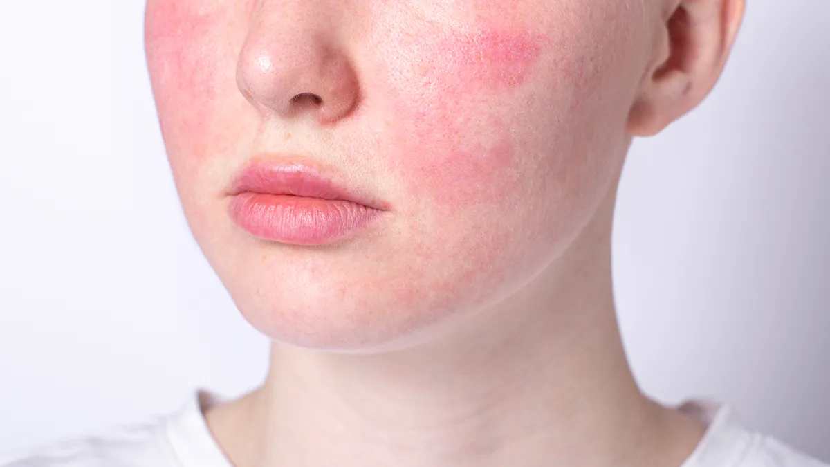 Młoda kobieta z wrażliwą, zaczerwienioną cerą