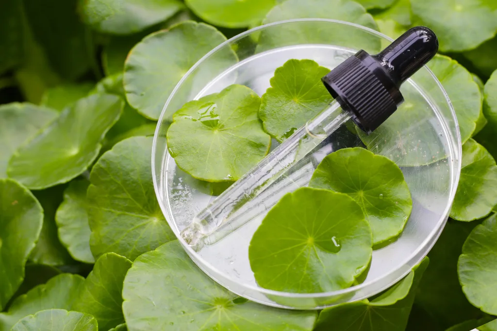 - Azjatykozyd (Asiaticoside): można go nazwać architektem zdrowej skóry. Związek ten aktywnie stymuluje fibroblasty do pracy, przyspiesza gojenie się ran i, co najważniejsze, pobudza syntezę kolagenu typu I i III, co przekłada się na jędrność i elastyczność.