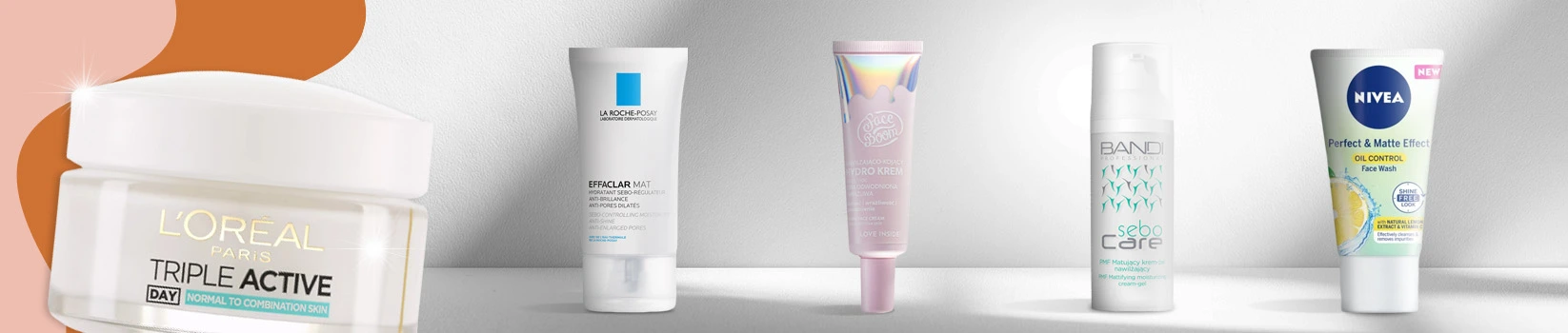 Używaj lekkich, matujących kremów nawilżających, produktów oczyszczających z kwasami (np. AHA, BHA) oraz pudrów matujących, które pomagają kontrolować połysk.