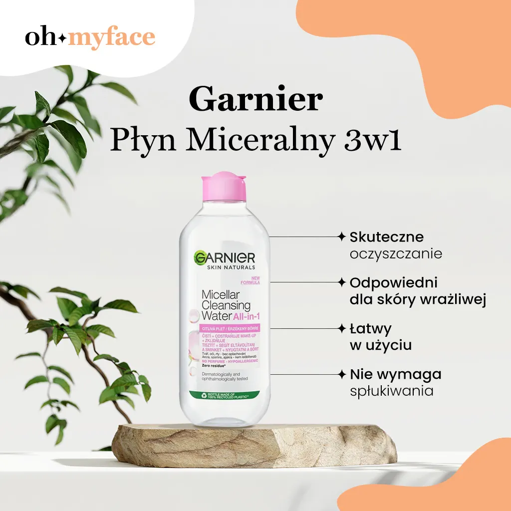 Płyn Garnier 3w1 jest przetestowany dermatologicznie oraz okulistycznie. Dzięki temu nadaje się do stosowania nawet w okolicach oczu i ust.