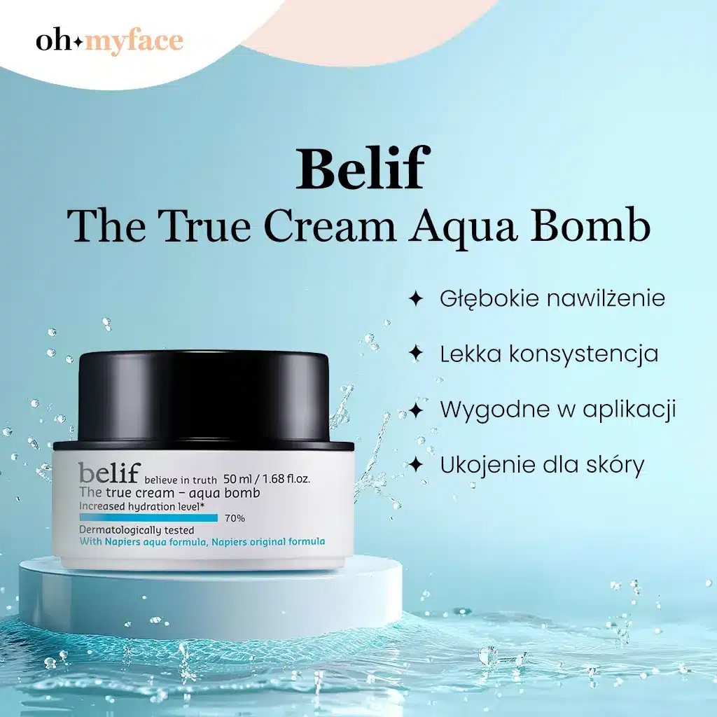 Podsumowanie: Belif The True Cream Aqua Bomb to doskonały wybór dla osób poszukujących intensywnego nawilżenia w lekkiej, żelowej formule. Produkt zapewnia natychmiastowe odświeżenie, a jego delikatna konsystencja sprawia, że doskonale sprawdza się pod makijażem, nie obciążając skóry. Regularne stosowanie widocznie poprawia elastyczność i miękkość cery, a dzięki naturalnym ekstraktom krem wspiera regenerację i wzmocnienie bariery ochronnej skóry. Wydajność produktu jest również imponująca – niewielka ilość wystarcza, aby pokryć całą twarz, co sprawia, że jeden słoiczek starcza na długi czas. Ogólnie rzecz biorąc, Aqua Bomb spełnia swoje obietnice i stanowi świetny dodatek do codziennej pielęgnacji, szczególnie dla osób z cerą odwodnioną i zmęczoną, które potrzebują dodatkowego nawilżenia i blasku.