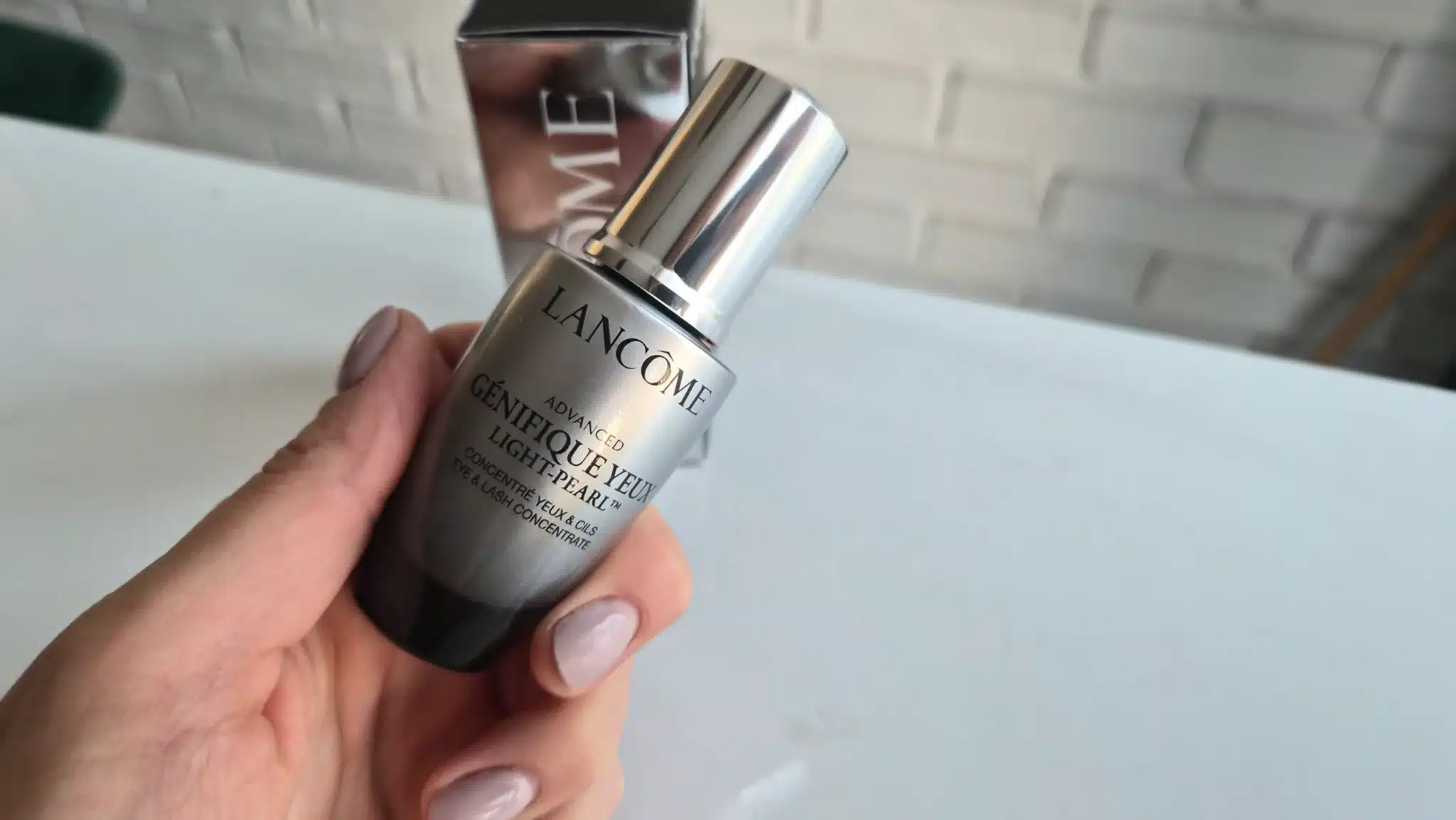 Dlaczego sięgnęłam po serum pod oczy Lancôme? Stwierdziłam, że nadszedł czas, aby zadbać o okolice oczu bardziej świadomie — skóra tam jest cieńsza, reaguje szybciej i pokazuje pierwsze oznaki zmęczenia. Wersja LightPearl od Lancôme przyciągnęła mnie swoim eleganckim opakowaniem, masażeremmetalową kroi-perłą oraz obietnicą działania zarówno na okolice oczu, jak i rzęsy. Pomyślałam: „czemu nie?” i zaczęłam test.