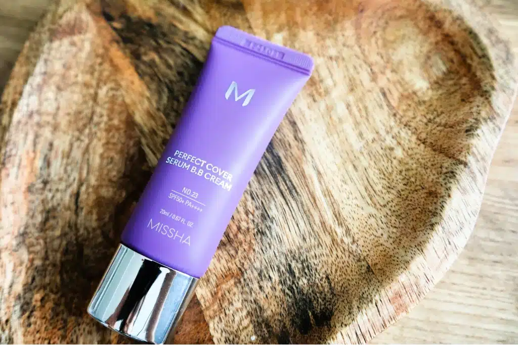 Krem BB Missha M Perfect Cover Serum na tle szarej ściany